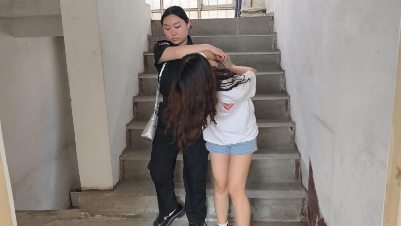 【忘忧社】难忘的毕业论文_妹妹大学毕业要写一篇关于女犯生活的论文,于是她想通过姐姐的关系去监狱体验一下,没想到姐姐因公外出,妹妹被姐姐的同事误认为是毒贩,被好一顿收拾,带重脚镣,驷马铐起来