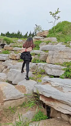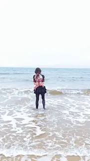 一屁股坐在海水上,不知道是什么样的奇妙感觉,后来又冒着危险走到礁石上,好在有惊无险,没有摔倒。