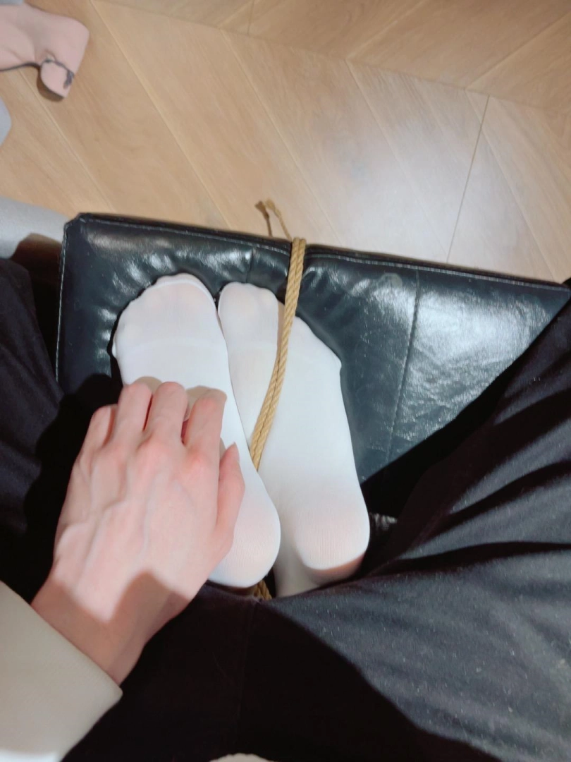 内容就不多解释了,趴在刑椅上,用皮带、绳子、手铐多重加固,然后狠狠TK白丝雪糕玉足!