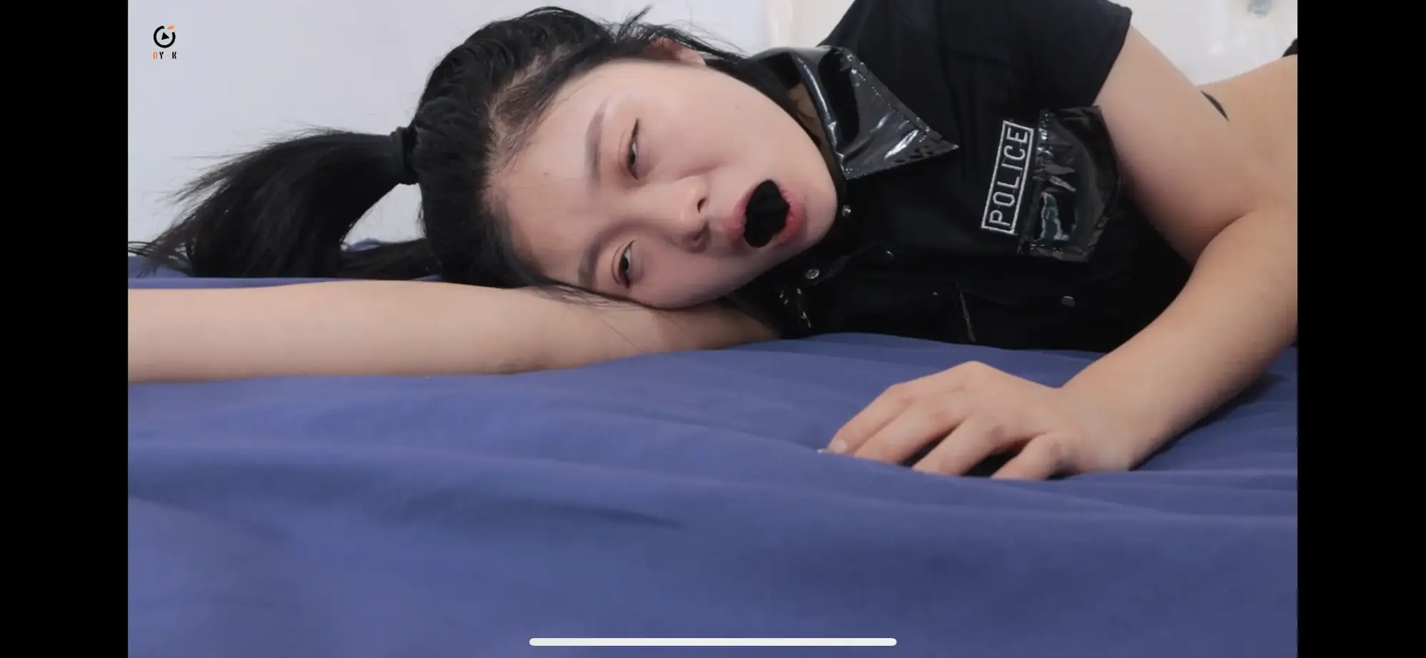 菲儿是检察官,实习过程中被歹人扎针弄晕,醒来后逃跑又被搞晕,随后将沾满乙醚的袜子塞入口中,进行洗脑改造,口水失禁,开口器伺候,之后更衣进行tk调教,最终丧失自主意识,成为一只性奴