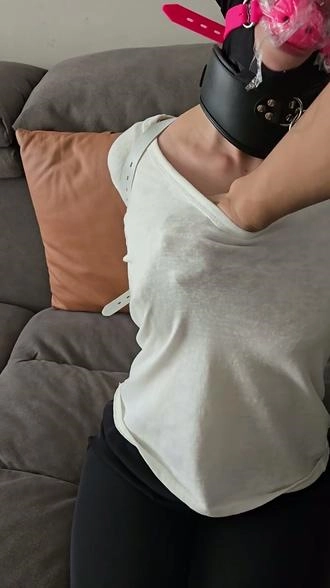 【小黑】新人端庄大胸淑女来体验捆绑,看到道具有点紧张,绑好以后更害怕了,单手套拘束大口球堵嘴,拘束好以后疯狂揉胸,内置[X_X]强高,五花驷马内置[X_X]强高