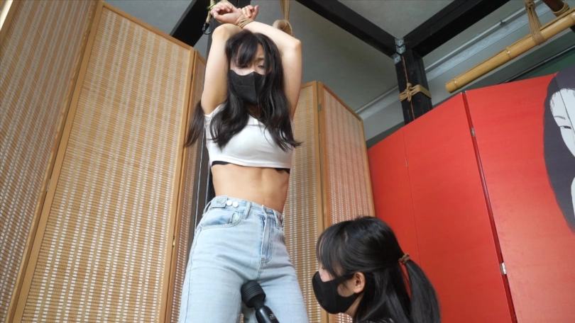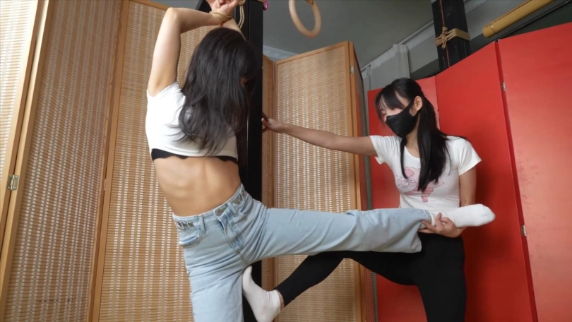 两个人分别把对方绑在柱子上,无限制挑逗