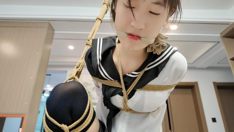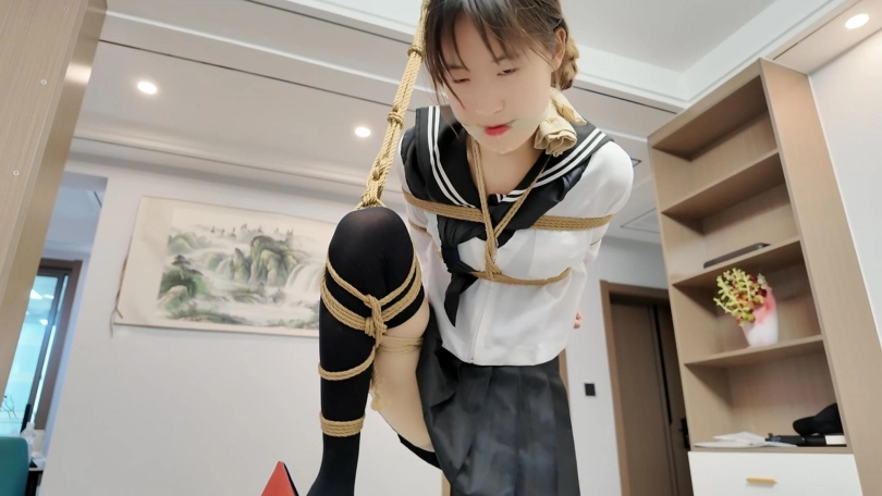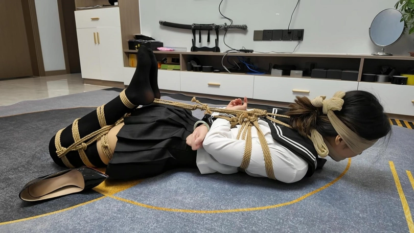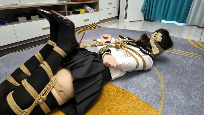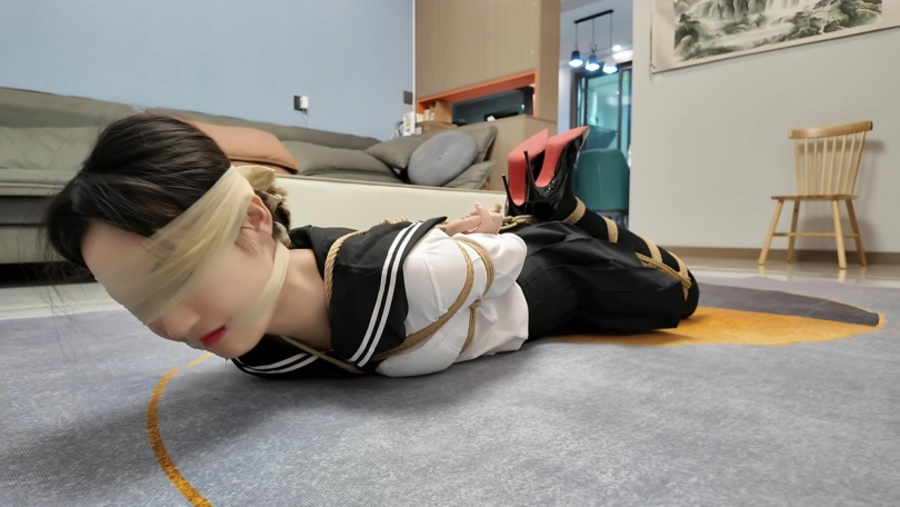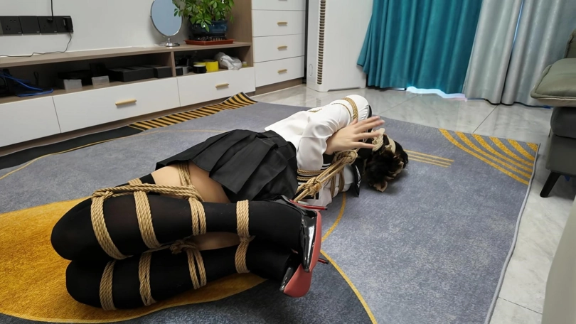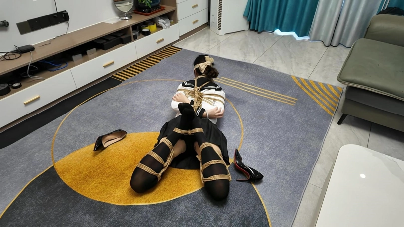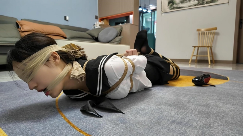 晓倩在家穿上肉丝。外面套上长筒黑丝,不料被早就潜入家里的歹徒捂晕,被驷马捆绑,丝袜堵嘴,丝袜蒙眼...