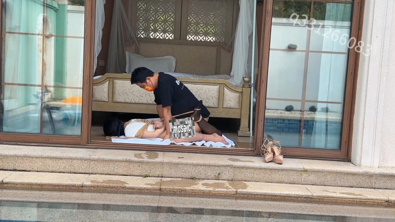 【欢乐谷】被捆绑放置在泳池别墅里尤物以及深度尺度调教