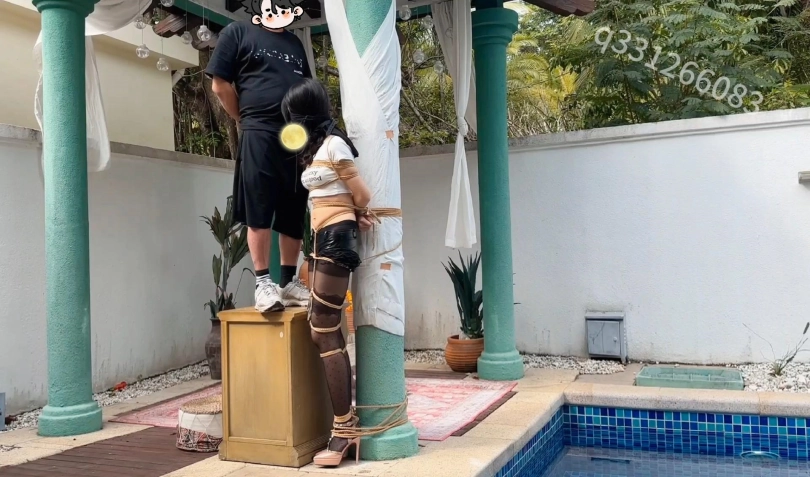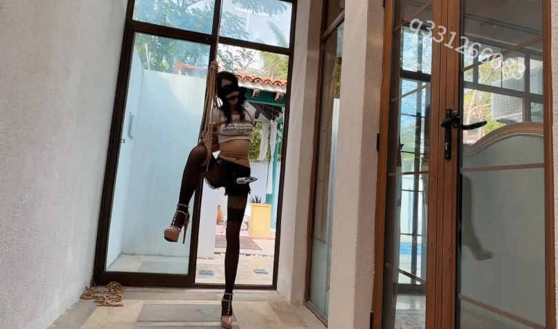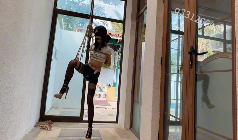 推开门一进入别墅,映入眼帘的就是一只被捆绑在别墅院子里的黑丝高跟尤物,只见她被捆绑在柱子上面,超高跟罚站,巨大口球口水滴答滴答的流,下面固定着一个强力玩具,仿佛已经强高多次了,在不停的扭动着,此情此景,接下来的各种捆绑姿势,和调教内容慢慢浮现,过道,走廊,沙发,泳池,能玩的都得玩个遍