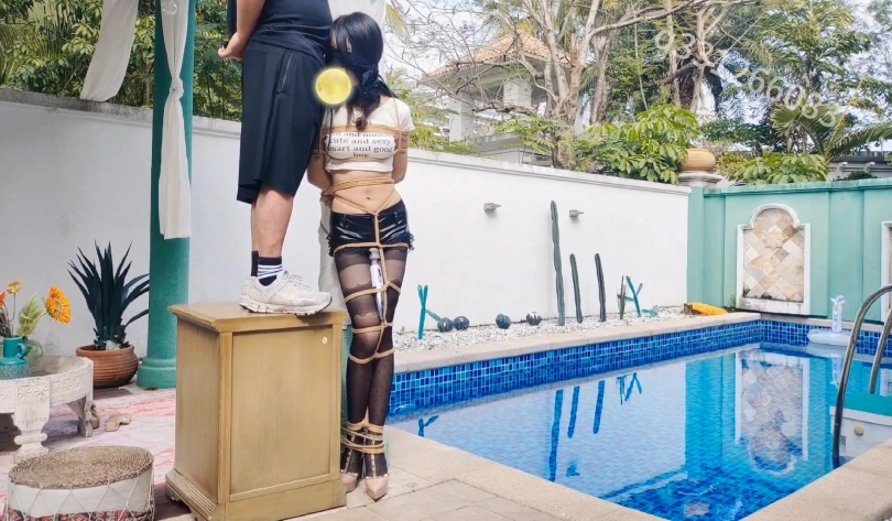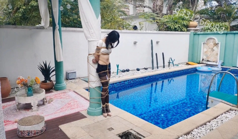 › 【欢乐谷】被捆绑放置在泳池别墅里尤物以及深度尺度调教