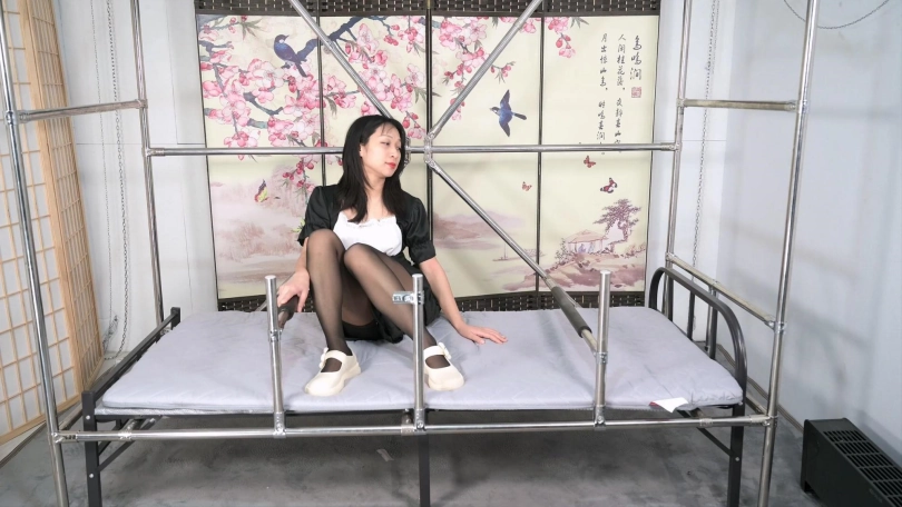 这是梦想之床的又一金属固定用法,受刑者为沐小雨,由于她竟然拒绝使用电击道具,那本主只好把刺激最大的道具都用上了,先把她固定好放置一段时间是前戏,然后是沐小雨比较怕的挠痒TK,再然后是皮鞭和TK的结合,本片皮鞭那段第一次没有按拍摄按钮,片中已经是第二顿皮鞭伺候,当然还有刺轮洗礼,最后的大菜是滴蜡,直到她精疲力竭才解我心头之愤闷。本片脱下沐小雨鞋子的时候,突发灵感让她闻自己的臭鞋,她竟然嫌弃自己的味道,还屏住呼吸,聪明的我马上给她挠痒,让她不得不深呼吸一下捂在嘴上的公主鞋,然后干脆就把鞋放在她嘴边,让她一直闻着!
