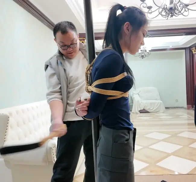 昏迷的凯丽苏醒过来,发现自己被结结实实地绑在一根柱子上,嘴也被胶带封住,于是开始挣扎,挣扎一段时间后,看到头目出现,不屑地扭过头,头目看着被抓的凯丽很是得意,撕掉凯丽的胶带以后,先是嘲讽了她几句,最后让凯丽屈服她,凯丽不屑地回应头目与其浪费时间还不如杀了她,头目于是开始对凯丽进行鞭打,没想到凯丽没有一点屈服样子,于是开始从生理心理上开始折磨凯丽,不停地对凯丽上下其手,凯丽一边挣扎着,一边痛骂头目,头目见这么久凯丽都没有屈服,于是给了凯丽几下重击,接着对凯丽说需要换更有趣的手段让凯丽屈服了,于是再次迷晕了凯丽。
