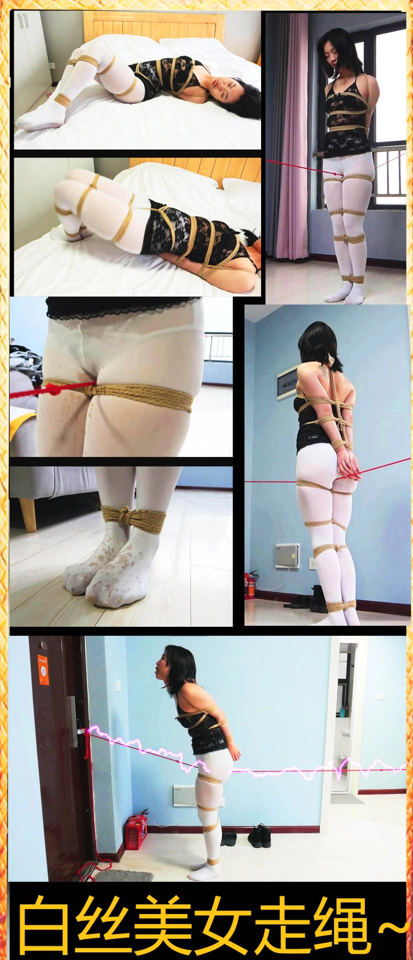 有趣的白丝走绳玩法,美女不仅仅被迫走绳,在走的过程还被不停拉扯刺激股绳,如果到时间走不完会被电击惩罚哦!
