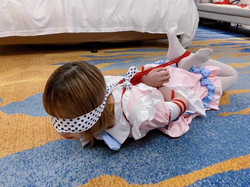 本期突出一个扎实。对穿着白丝女仆装的小妹妹当然要绑的结结实实啦~上半身采用了最扎实的传统五花,手臂上的肉被绳子勒成一截一截的正是五花扎实的魅力。
