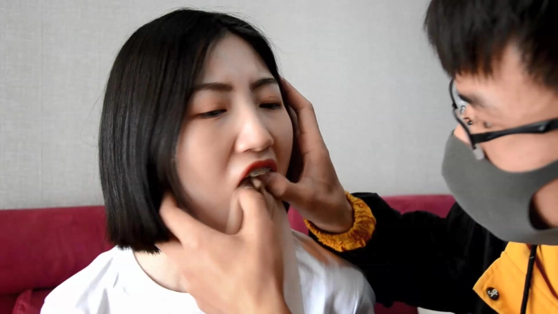 劫匪捏住小鱼的鼻子,迫使她张开嘴,把手里的肉色连裤丝袜一点点慢慢塞入小鱼口中(先是裆部,然后两条袜腿),一整条裤袜都被塞入了小鱼的嘴里。