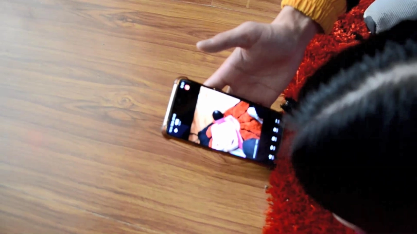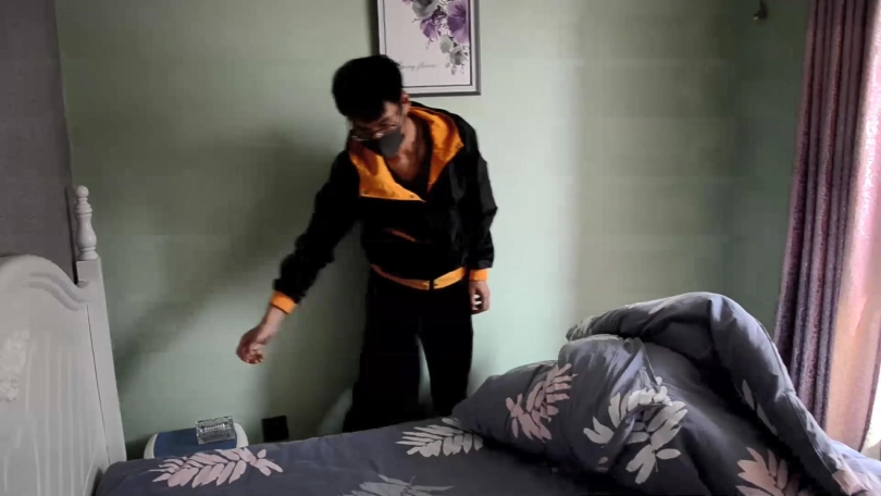 小鱼坐在沙发挣扎着,不久她想办法坐到地上,站起来蹦跳向大门口试图逃跑,正在这时,在卧室翻找财物的劫匪似乎察觉到了什么,出来发现小鱼把她抓了回去。