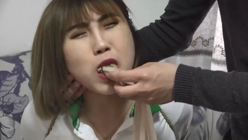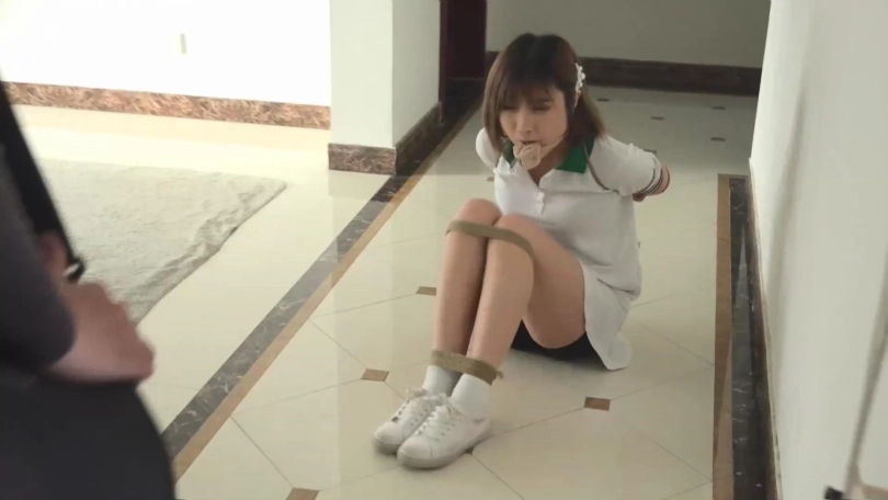 劫匪把阿琳捆得更紧,脱掉阿琳脚上的鞋子和穿的一双白色棉袜,取下阿琳嘴里肉色连裤丝袜,把这双原味棉袜强行塞入阿琳口中,塞得阿琳直恶心,翻白眼。