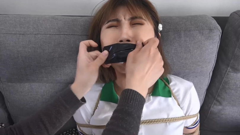 看点:二次捆堵、原味棉袜塞嘴、胶布绷带多重缠绕封嘴封眼、裸足脚面特写。