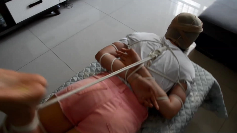 看点:二次捆堵、内裤塞嘴、锦纶丝袜塞嘴,胶布胶带绷带多重缠绕封嘴封眼、连裤丝袜套头、剧烈挣扎、锦纶丝袜脚面+裸足脚面特写。