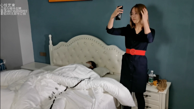 悠悠努力扭动身子,抖开身上的被子,这时候已经有粉丝打电话来,手机开始震动,悠悠被刺激地扭动臀部,不断想蹭掉手机,但是固定太牢根本没有办法