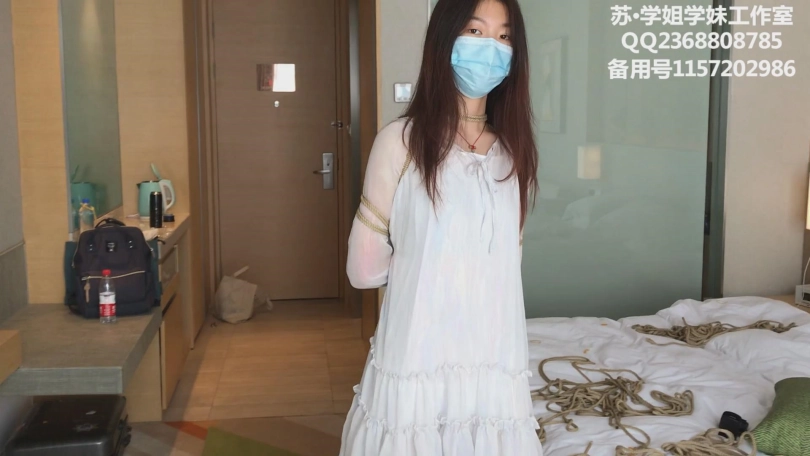 一套五花驷马和日式驷马下来,解语慢慢熟悉了绳艺模特这份工作,开始不再拘束和紧张,拍摄过程中和我的交流也多了起来。我问解语,后面的拍摄是还是简单五花日式一下,还是试点高难度的?解语说,既然是来试镜,那就试点新的吧,你轻点绑就行。于是一套后手观音坐缚和欧式驷马,让解语的胳膊感受到了绳子带来的痛楚。解语的柔韧性真的好,后手观音手可以到脖子的位置,欧式直臂胳膊肘可以完全并拢。这两个姿势,一个在茶几上,一个在桌子上,让人看了有一种货物出售的感觉。我和解语说,这像卖猪肉一样,解语笑着问我今年猪肉价钱怎么样。后来让解语换上了白纱裙和白色帆布靴。解语真是一个千种风情的女子,穿背心短裤时的酷女孩一下子变成了温婉的淑女范儿。一套五花加上戴镣行走,解语居然很放得开,时不时还会扭扭身子。我让她跪下,她说这有一种臣服吧?更多精彩,等你来片中探索。片尾还有解语的被绑感受访谈哦。