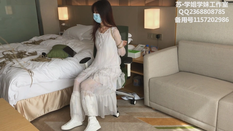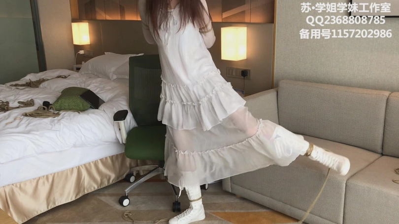 【学姐学妹】解语试镜 下-腼腆妹子+白纱裙白色帆布靴+后手观音坐缚+欧式驷马+五花戴镣行走