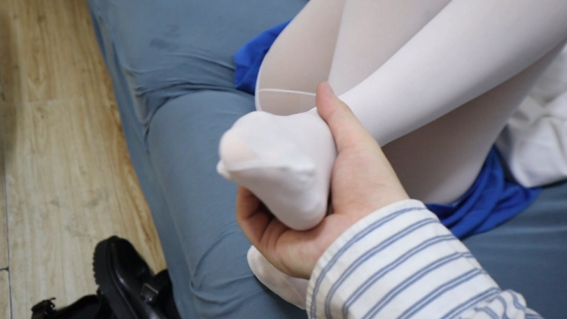 后续直接把白丝脚拉过来玩弄,害的小姐姐一边缩躲一边笑着叫,tk全部脚底清晰可见,脚底超清晰