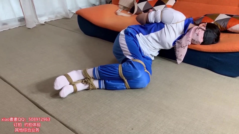 开始挣扎,可是挣扎了十分钟之后,绳子是一丁点也没有松反而越来越紧,xiao素素开始急了,拼命挣扎 在地上和沙发上滚来滚去,最后累得昏睡过去!