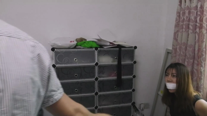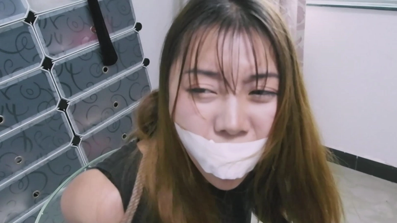 接着是腿,然后从旁边扯过王娜平时直播穿的丝袜就塞进张涵的嘴巴,接着封上胶布。