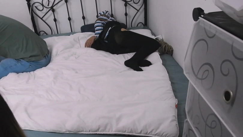 陈凯看见自己给王娜送来的自缚的绳子还有一些就顺手拿过来将张涵的手绑起来。