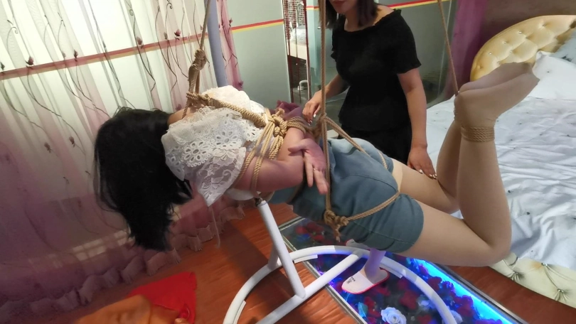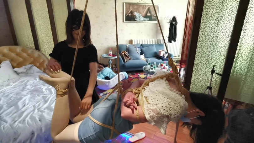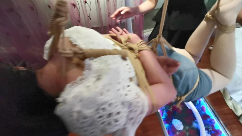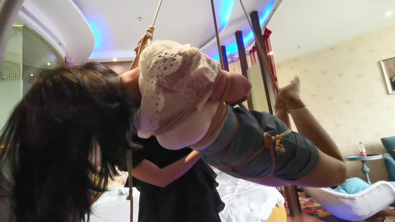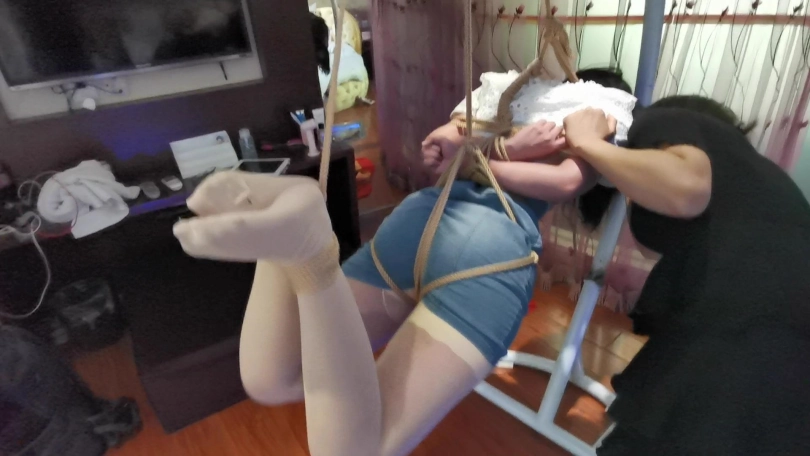 琳洛首次尝试吊缚,刚开始还好奇,挺期待,结果吊上去没多久就开始受不了了,居然被吊哭了,赶紧解开放下来。