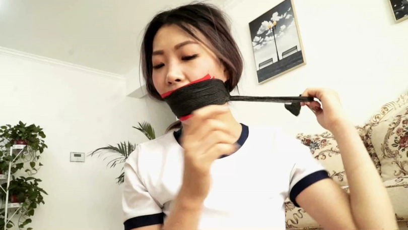 第3段:逃脱未遂惨遭劫匪二次捆堵驷马封眼的吴晗不知挣扎了多长时间,终于弄松绳结挣脱捆绑。吴晗坐在床上慢慢撕开封眼蓝色自粘绷带和粉色静电胶带,适应光明后撕开封嘴自粘绷带,拽出口中劫匪送给她的“礼物”——一条已经湿漉漉的黑色连裤丝袜,吴晗厌恶地看了看,仍掉了塞嘴丝袜,下地去报警。