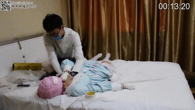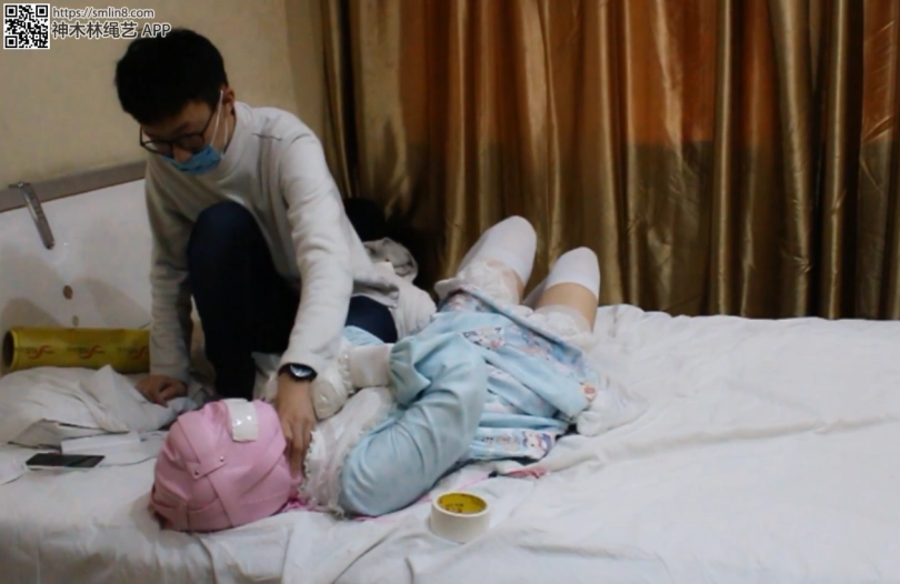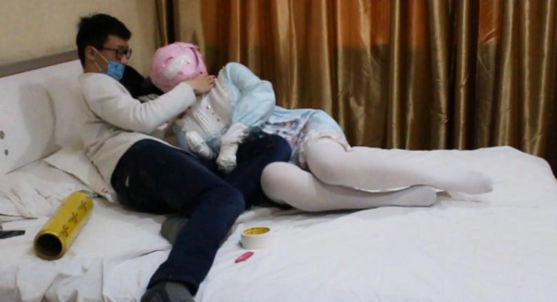 于是坏坏的我在茶茶不知情的情况下用布基胶带贴住了茶茶全包头套上的呼吸孔,然后就可以享受到萝莉の挣扎啦~