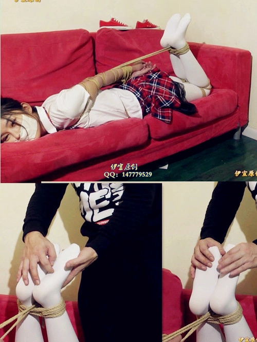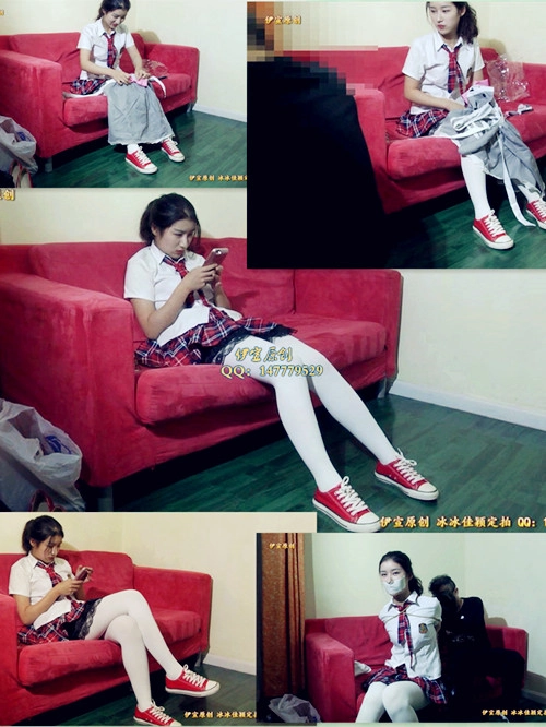 【伊宣】冰冰超紧捆绑外加金属,学生装白袜TK、胶布封嘴、胶带封嘴