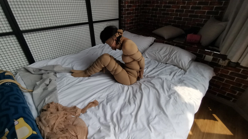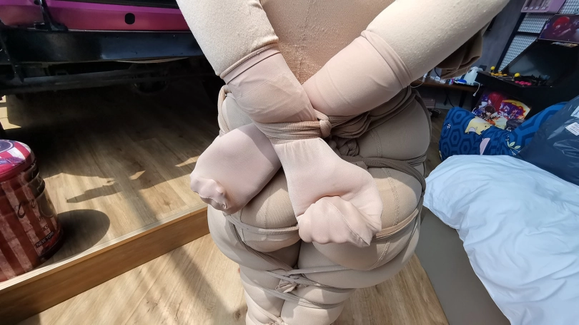 【JS】琳洛-肉色连体衣,全身连裤袜紧缚 蒙堵
