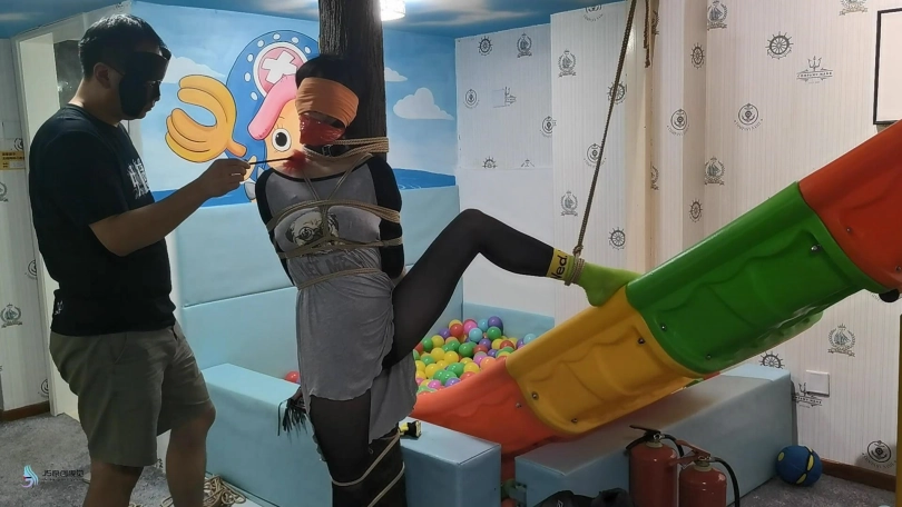 【JS】【激辣】黑丝棉袜单腿吊丝袜堵嘴胶带蒙眼抚摸TK