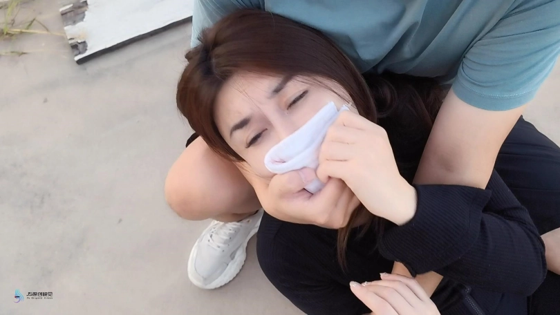 女孩在楼顶的天台看风景,她让她的闺蜜来天台找她。结果一起被坏人迷晕。