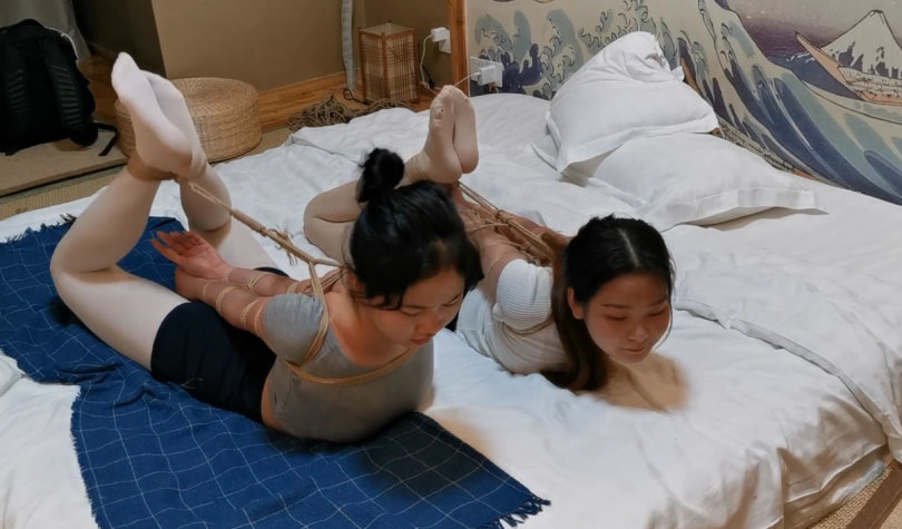 两个妹子都是艺术学院的在读生。柔韧性爆炸。第一次拍摄绳艺。紧缚放置时大家一直在催的题材。这次的拍摄时我本人有史以来最喜欢的一次拍摄。过程完全真实。完美记录了两个妹子从开始的好奇,被绑之后的打闹,发现我太长时间没回来,逐渐消失的笑容,开始疯狂的挣脱,相互逃脱甚至疯狂大叫。