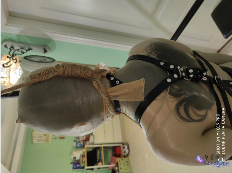 【华素】油亮丝袜全包,皮具捆绑、吊脖虐、抚摸、难受。