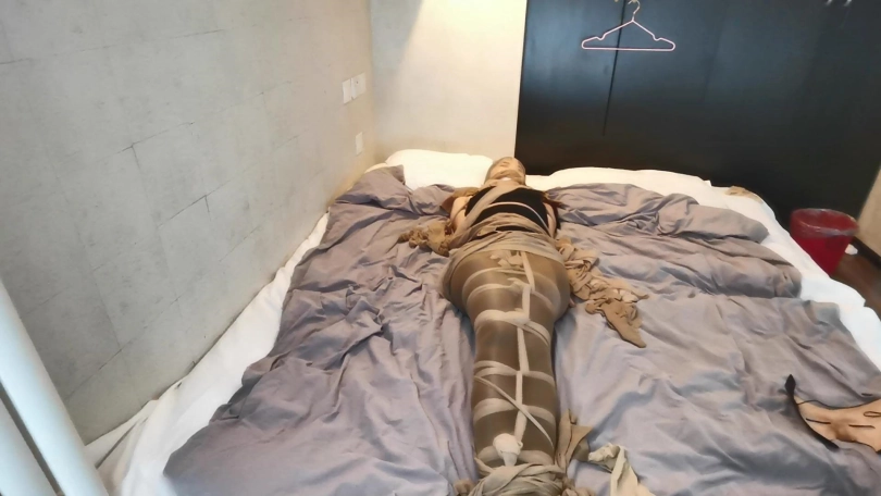 本次拍摄是比较痛苦的,这次叫了3名模特,定制的单子比较多,时间也比较紧张。两天睡了不到6小时。早上勉强拍了小冷两个片,中午吃饭后,本人实在是扛不住了,困意袭来。突然想到可以拍一个长时间束缚放置的视频,自己也可以休息下。于是就有了本部作品。