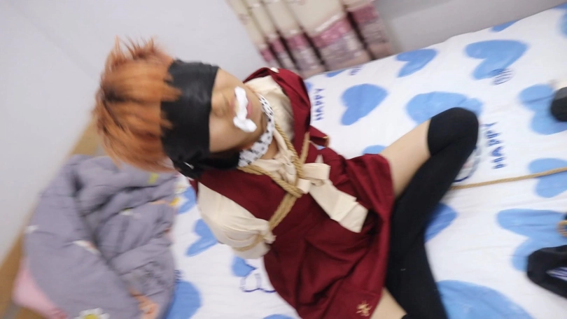 正着绑玩反着绑,然后再把腿绑在栏杆上自己弄着玩 直到解开为止