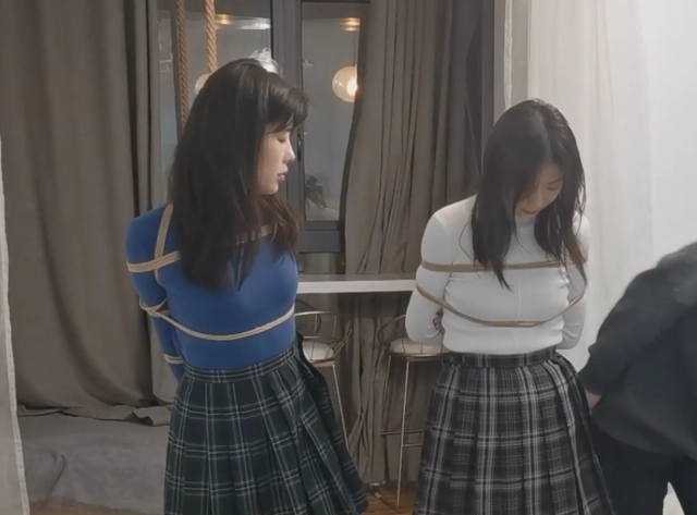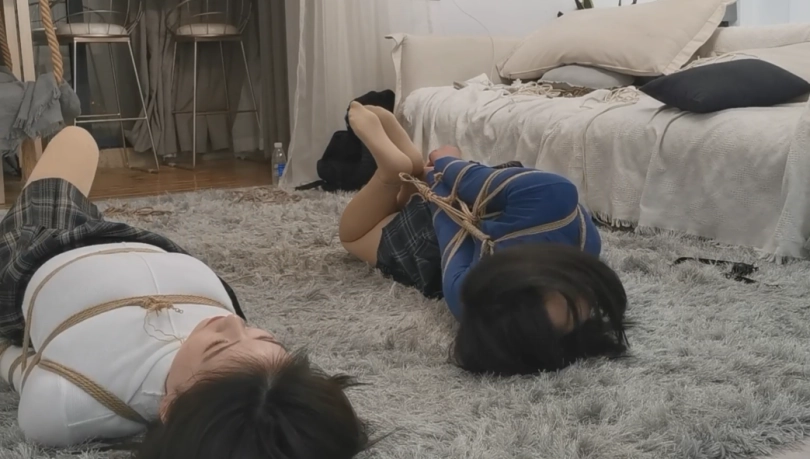 一直以为比较极限的直臂驷马是没有什么逃脱的可能的,特别是在长时间捆绑后,手臂酸麻的情况下。把婉婉和小叶绑在房间,自己跑出去吃饭。本来是想拍放置题材。谁知道在两人手麻的受不了的情况下,表现出极强的求生欲。一阵扭动挣扎后,居然合力逃脱了。深度怀疑是不是自己的技术退步了。。。