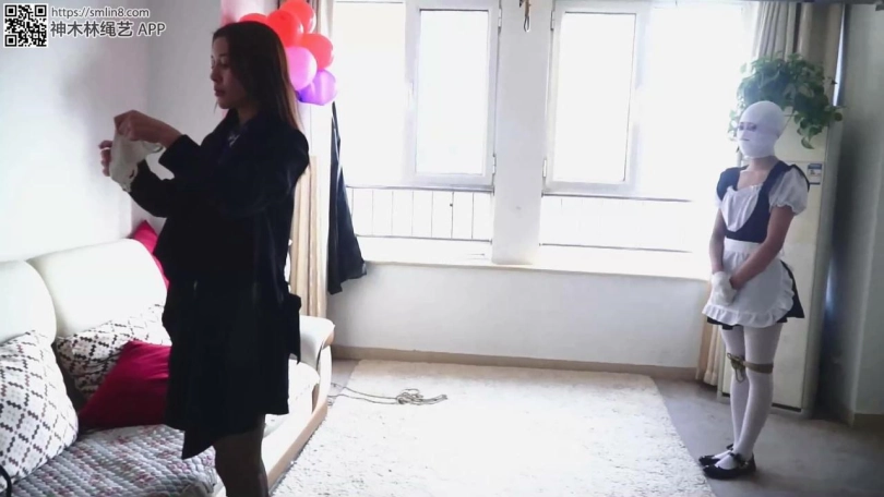 来到张萌家,徐青被张萌重新捆绑了脚就坐在沙发上。 “我跟你说啊,你现在在我住的地方,就你现在这个样子我就是弄死你,都没人知道,所以你最好乖乖听话。” “呜呜呜呜呜” “不服是吧,有你好看” 说着张萌就给了徐青一记耳光,打的她是眼冒金星。 “听话不” “呜呜呜。”徐青哭着点着头。 “那就好,我给你解开手脚,你老实点,这里有套衣服你赶紧换上。” 徐青一看是一套传说中的女仆套装, 上衣裙子 白丝和鞋子,自己现在哪敢不从,这个疯女人说不好真能杀了自己, 只有先照办,走一步算一步。 于是徐青按照张萌说的换上衣服,虽然手脚被解开,但是嘴巴的束缚仍在。 换完以后,张萌又将徐青的腿绑成小碎步模式,以防逃跑。手呢,被张萌用绷带给包成两个拳头。张萌又用从徐青 那里带来的绷带将徐青的整个头包了起来,只剩下眼睛和呼吸的鼻子。 “我告诉你,你以后就我的私人女仆,在这伺候我。你不用想着逃走,基本不可能,你要是听话,保不准哪天我心 情好就放走你,要是不听话,我就弄死你,再给你抛尸” “上次你表哥那样对我,你现在就等于给他还债吧” “呜呜呜呜”,徐青听完拼命摇头表示抗议。 转眼过去了半个月,徐青就这样每天伺候着张萌。 除了吃饭,其他时间自己就这么被禁锢着。张萌也是很聪明,对徐青的看管很严格。 老陈最近一直在动用各种手段寻找自己的表妹,总觉得自己表妹的失踪是有问题的。但是苦于觅无踪迹。 这天,张萌闲来无事,一旁的徐青正在做着家务。 张萌就看见一旁扔着的徐青的手机,于是拿来把玩,这一开机,不要紧。 老陈托朋友对表妹的手机进行了定位,立即收到了信息。 于是,老陈急忙按照定位信息赶了过去,定位信息只能定位到大体的位置,但不精确,老陈便叫着民警一户一户的 查找。 叮咚,有人敲门,张萌赶忙起身。 “你给我滚屋里去,不叫你,不许出声出来,此时被束缚的徐青不情愿的走进内室” 张萌也是平时坏事做多了,怕被报复和警察上门,于是拿起口罩戴上,才开门。 “你好,请问你家里最近有没有陌生人留宿” “没有,没有” “不好意思打扰了” 老陈却对这户有点怀疑,但是不能明说,只能暗暗记下。 张萌确定人走后,坐到沙发上。惊魂未定,她当人认出了来人就是老陈,只是自己幸亏戴着口罩进行伪装。 “不行,这里不能呆了。得赶紧换地方。” “小JR,出来”这是对徐青的“爱称” 徐青慢慢挪动被绑住的腿,小碎步走出来。 老娘出个门,你在这老实点,有人来,不许出声,不许开门,我很快回来。 “呜呜呜”,徐青点头答应。 张萌迅速穿好衣服,不忘戴着口罩,拿好包就出门了。 徐青看着自己那双被包成拳头的手,又急又恨,怎么才能逃走呢。手这样既解不开绳子又打不开门的。 就在张萌离开不久,老陈又回到了张萌家门口。直觉告诉,这里一定有问题。 叮咚。。。。。 有人敲门。徐青欣喜若狂。 “呜呜呜呜呜。”但是自己目前的样子怎么能开门呢,而且万一是疯女人试探自己怎么办。 这时,徐青听到熟悉的声音。 “有人吗,物业的” 是表哥的声音,是表哥。 徐青情急之下一边呜呜呜大叫,一边用被包住的手,击打着门。 老陈隐约听到声音,果然有问题。掏出一把万能钥匙试探开门。要知道老陈很早以前的发家背景也是不光彩的, 这种小问题根本难不倒他。 门打开了,徐青一见表哥便一头哭着扑了过去,这倒把老陈吓了一跳。 (待续)