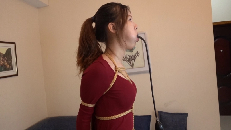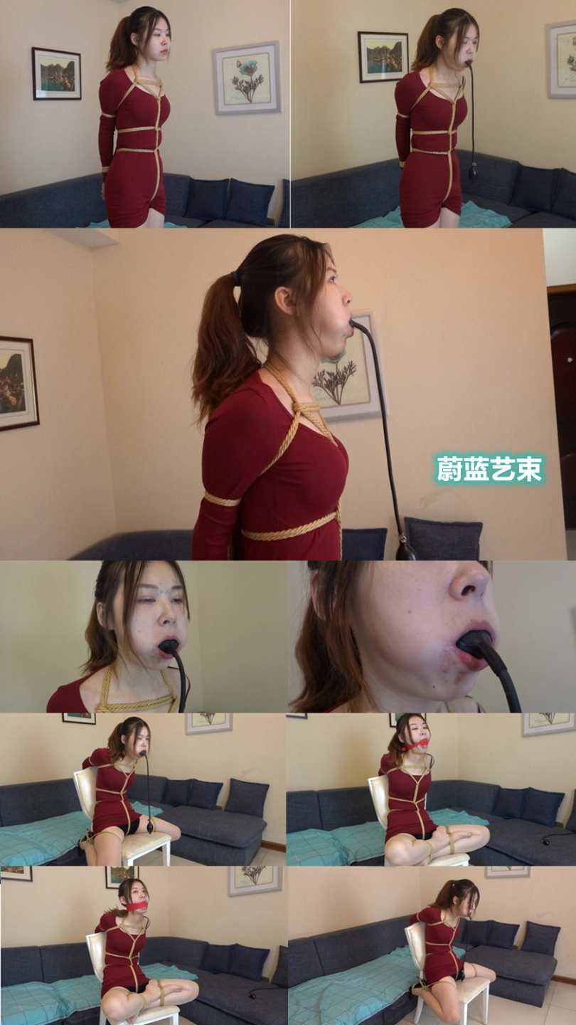 【蔚蓝艺束】主播瑶瑶 完美身材 直臂盘腿坐缚 充气口塞