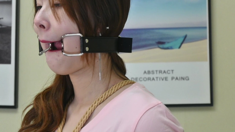 主播瑶瑶粉T短裙,日式捆绑彰显身材,驷马仰躺,高跟鞋包裹着脚180度与大腿折叠,痛苦难耐动弹不得,双脚交叉驷马,脱掉高跟鞋TK,口枷紧紧的勒在嘴里,口水流下来那一刻如泉水。