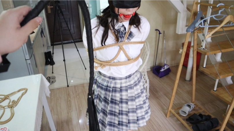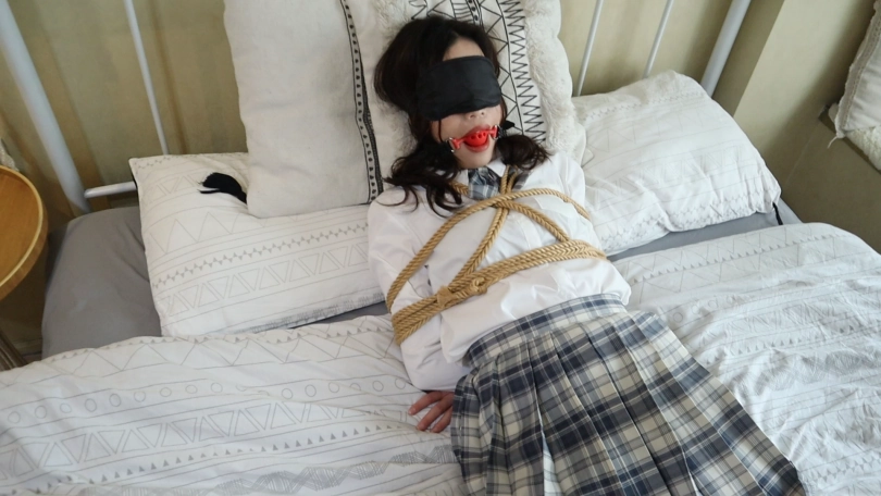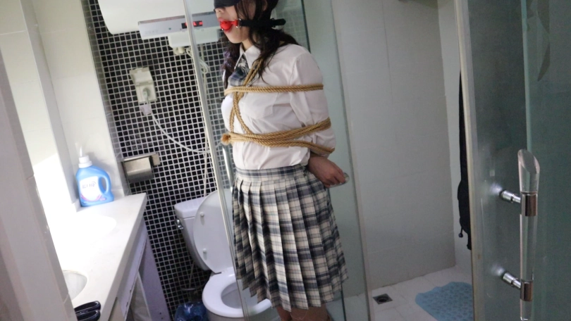 打扫的叔叔在门外打扫卫生,谁又能想到,在这个房间里,有一个被绳子紧紧捆绑的美少女在呢