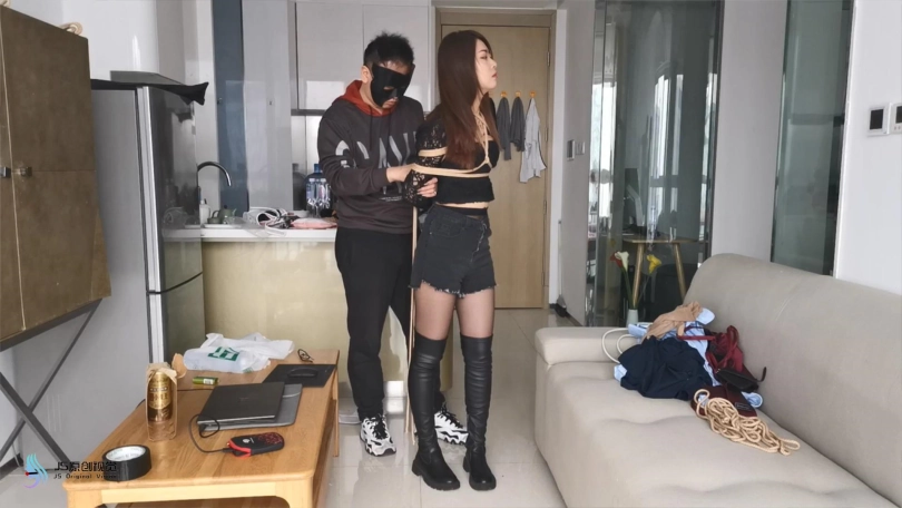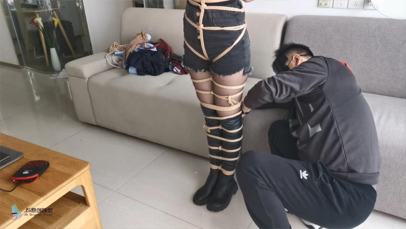 【JS】瑾萱 黑丝过膝长靴 全身密集捆绑 DD刺激呻吟