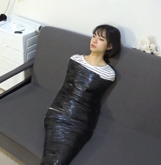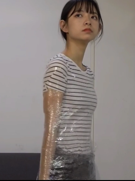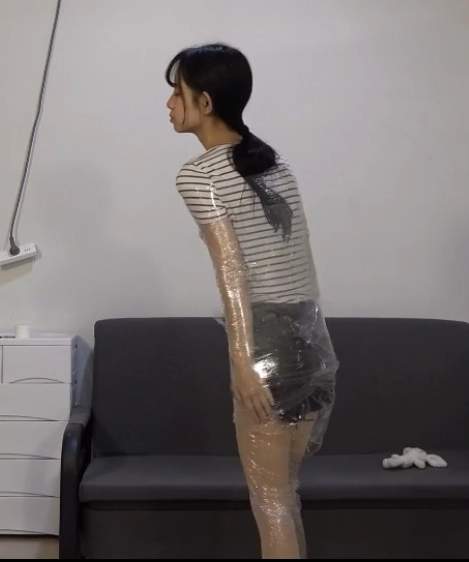 这一次她又感觉到自己的身体不受控制了,而这一次捆绑她的不是绳索,而是保鲜膜,小A的全身都被保鲜膜缠了个结实