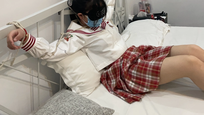 先将她的手困在床上,这样动也动不了