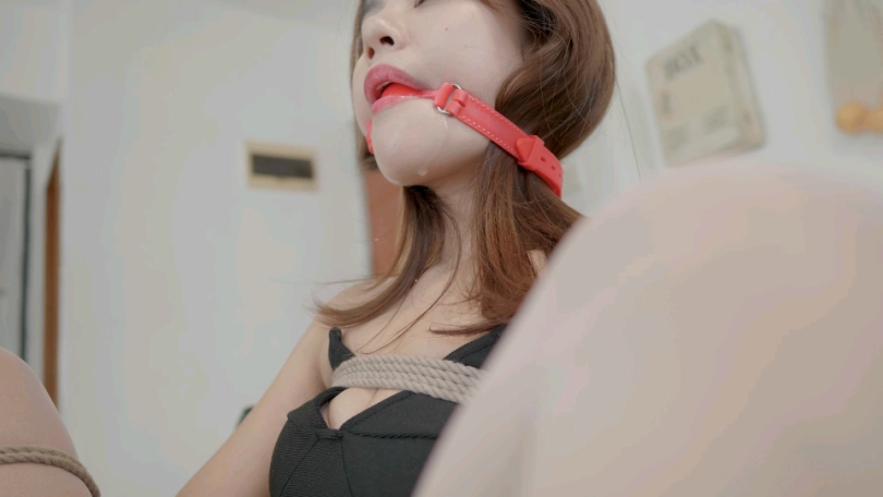 【心悦艺束】白丝〖剧情向〗后手并腿紧缚+ 沙发上M腿缚-【连衣裙。白丝袜。高跟】丝袜勒嘴。口球流口水。