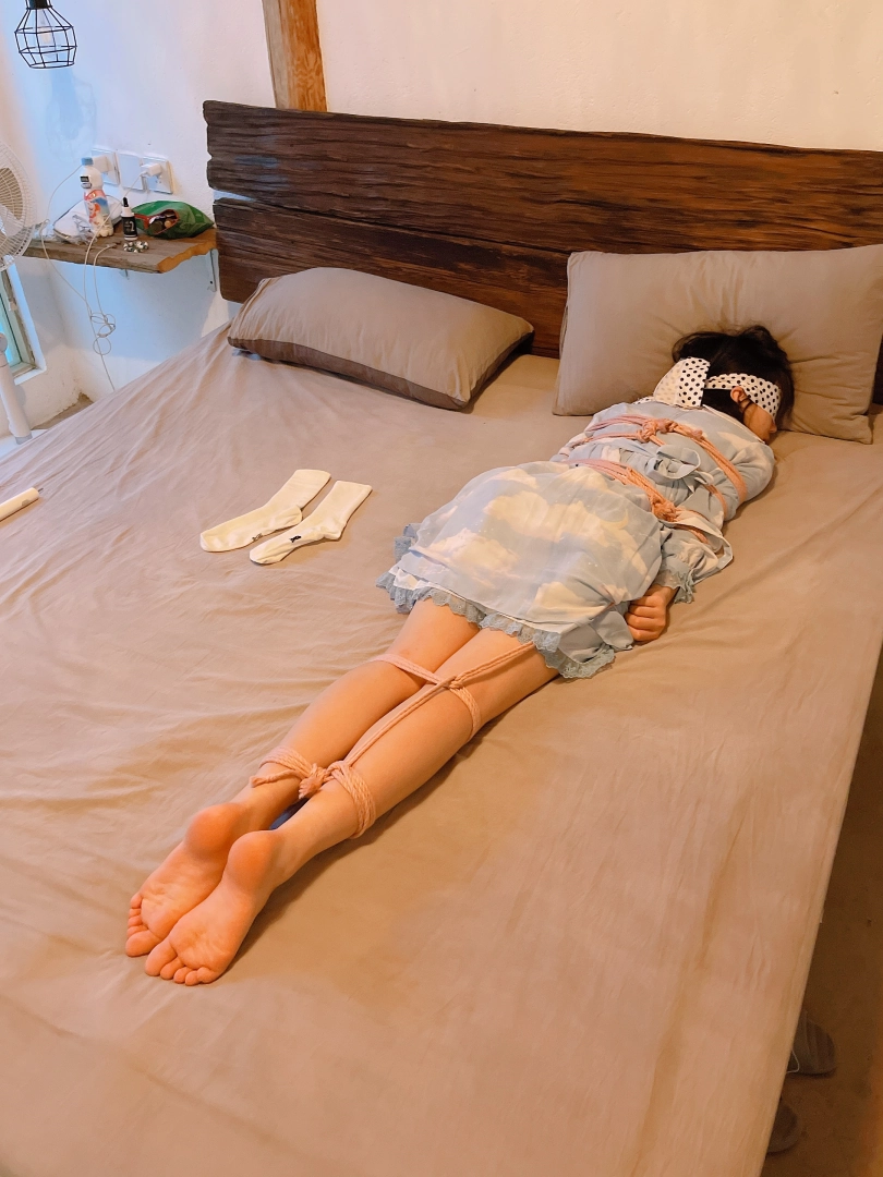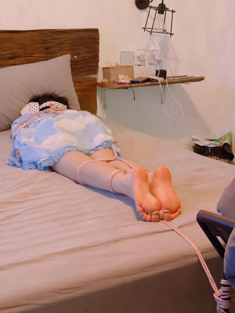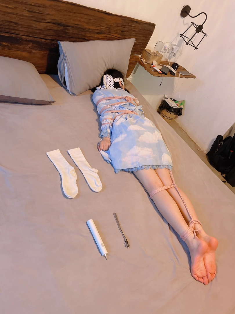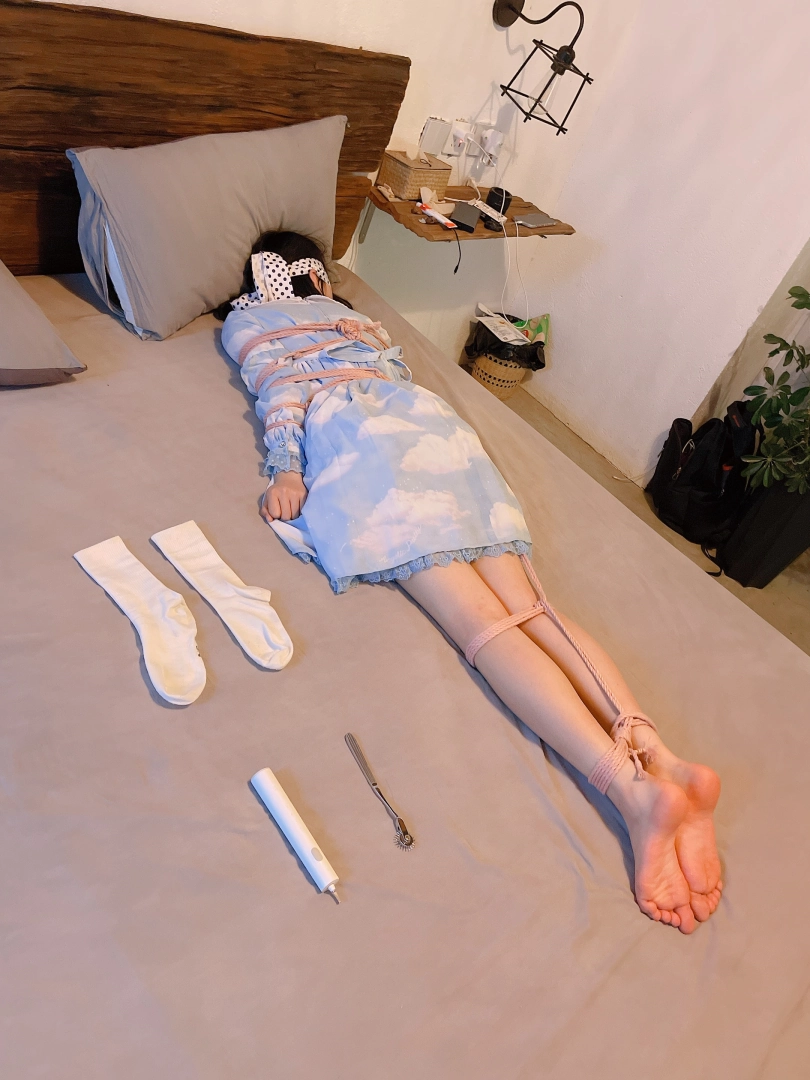把茶茶用“立正”的姿势呈“l”字型绑好,仔细抚摸挠茶茶的小白袜脚底~然后脱下茶茶的小白袜整齐的摆放在一旁、甚至把茶茶的脚趾都并拢起来绑在一起固定在床尾,用手指、刺轮、梳子等各种各样的挠痒道具折磨茶茶粉嫩的脚心。同时也好好照顾了茶茶怕痒的腋窝。茶茶几乎疯了一样的笑着、拼尽全力的挣扎着,但无济于事:在脚趾都绑住的情况下,任何挣扎都是徒劳,茶茶只能绝望的忍受着让她崩溃的痒感一波又一波的刺激着她的大脑...