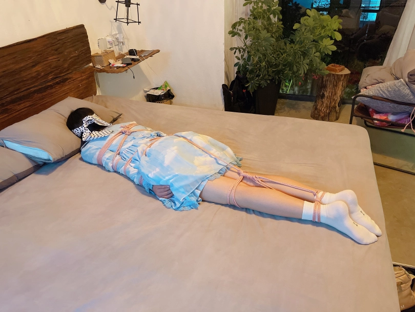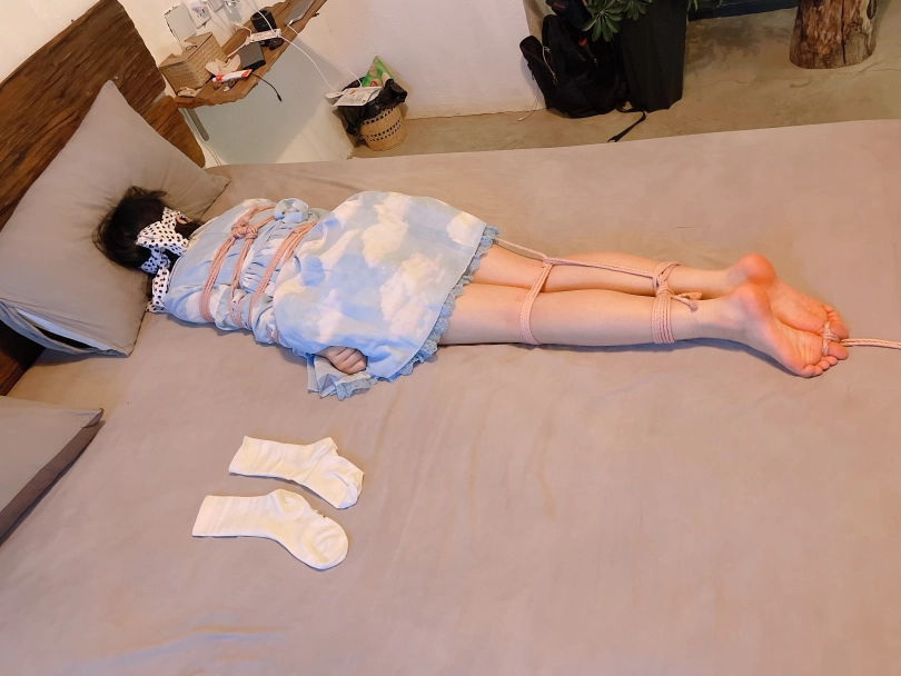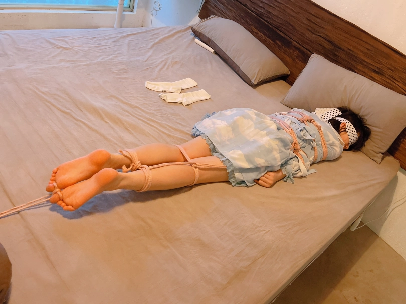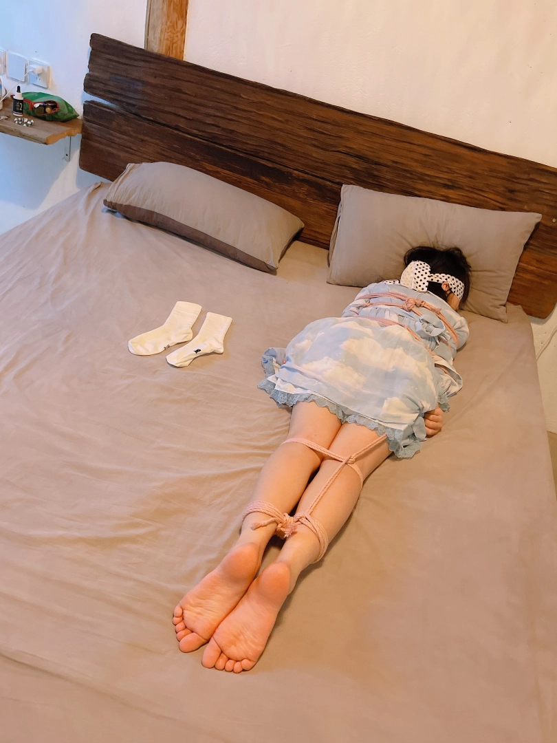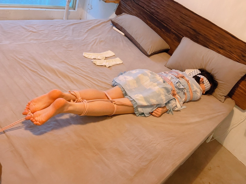 把茶茶用“立正”的姿势呈“l”字型绑好,仔细抚摸挠茶茶的小白袜脚底~然后脱下茶茶的小白袜整齐的摆放在一旁、甚至把茶茶的脚趾都并拢起来绑在一起固定在床尾,用手指、刺轮、梳子等各种各样的挠痒道具折磨茶茶粉嫩的脚心。同时也好好照顾了茶茶怕痒的腋窝。茶茶几乎疯了一样的笑着、拼尽全力的挣扎着,但无济于事:在脚趾都绑住的情况下,任何挣扎都是徒劳,茶茶只能绝望的忍受着让她崩溃的痒感一波又一波的刺激着她的大脑...