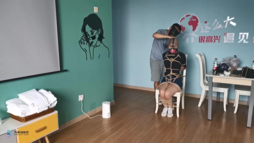 【JS】新人妙彤 全身紧缚椅子绑 丝袜套头 马具性口塞口水直流 [不可描述]棒QZGC