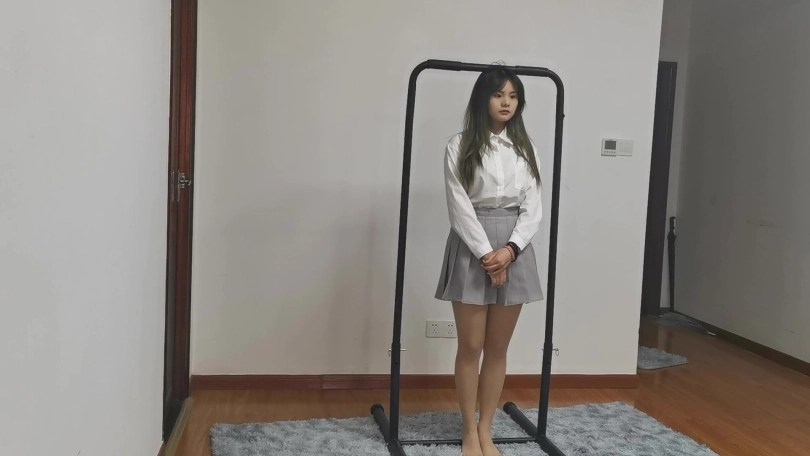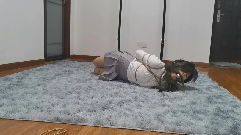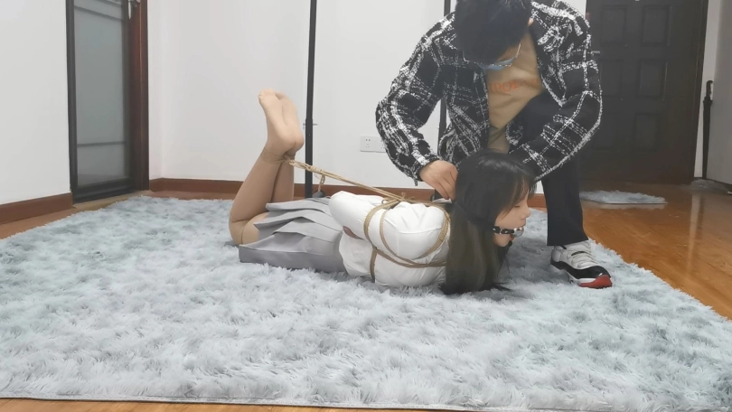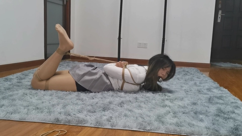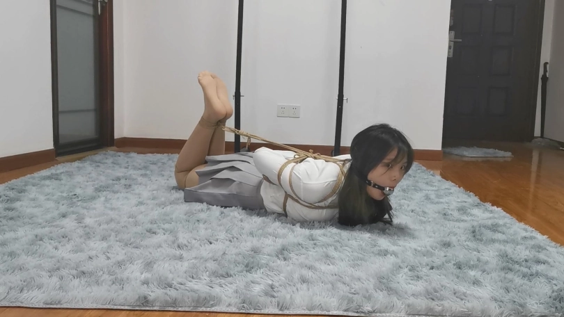 清纯有肉的小美女猫林搭配百褶裙非常有学生的感觉,日式捆绑显得异常丰满,妹子嘴巴比较小,即使是最小号的口球戴上嘴巴也鼓鼓的。完成驷马捆绑后把妹子孤身一人放置在房间里,妹子是第一次体验驷马放置,一开始还挣扎的十分卖力,但是她不知道越挣扎越紧,最后十分钟妹子彻底崩溃,呻吟的声音都是带哭腔的。妹子是第一次戴口球,放置期间一直想把口球吐出来,可是到最后都没吐出来,只能含着口球哭泣。